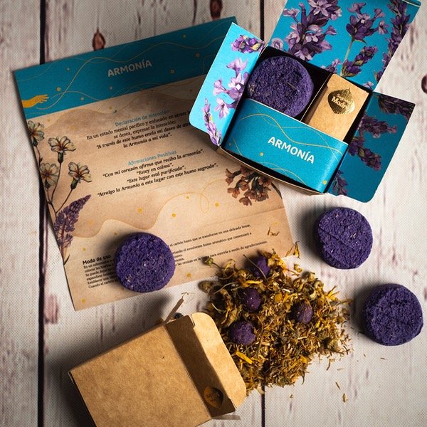 Composición: 4 carbones vegetales, perlas aromáticas, hierbas aromáticas, resinas naturales, aceites esenciales y aglutinante natural.